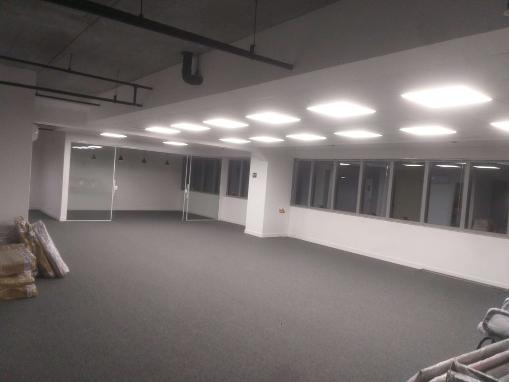 Instalação de luminária em sala comercial